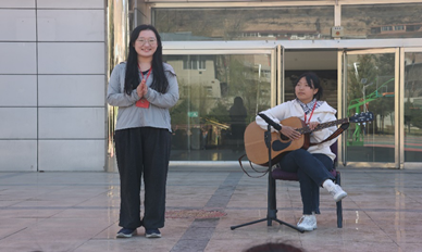 最后进行的是交流环节,这一环节为这场活动增添了一抹绚丽色彩。同学们表演了歌曲、乐器演奏等节目。在互动与分享中,拉近了彼此的距离,营造出积极乐观的氛围。