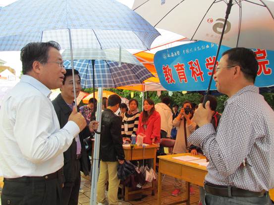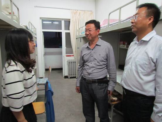 接待处检查指导工作,王书记、崔校长询问新生报道情况,学院副书记杨文军向学校领导汇报了新生接待工作安排及报到情况。