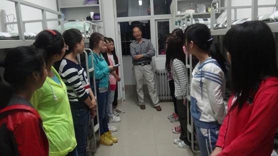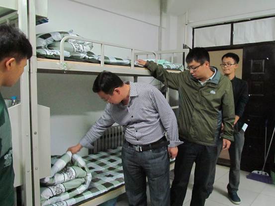 组织2014届全体新生从窑洞广场出发,由辅导员带领,学生会干部为新生详细介绍学校的各栋建筑,使他们了解学院办公室、图书馆、教学楼的具体位置。晚上,院长张社争、副书记杨文军、科研秘书冯晓江、辅导员高飞翔、王会青等学院领导和老师在当天晚上深入宿舍看望新生。师生们如家人般交谈,谈家乡、谈文化、谈美食。学院领导在讲解学院工作的同时,也提醒新生注意在校与外出安全,使他们感受到来自院领导的关心与重视。