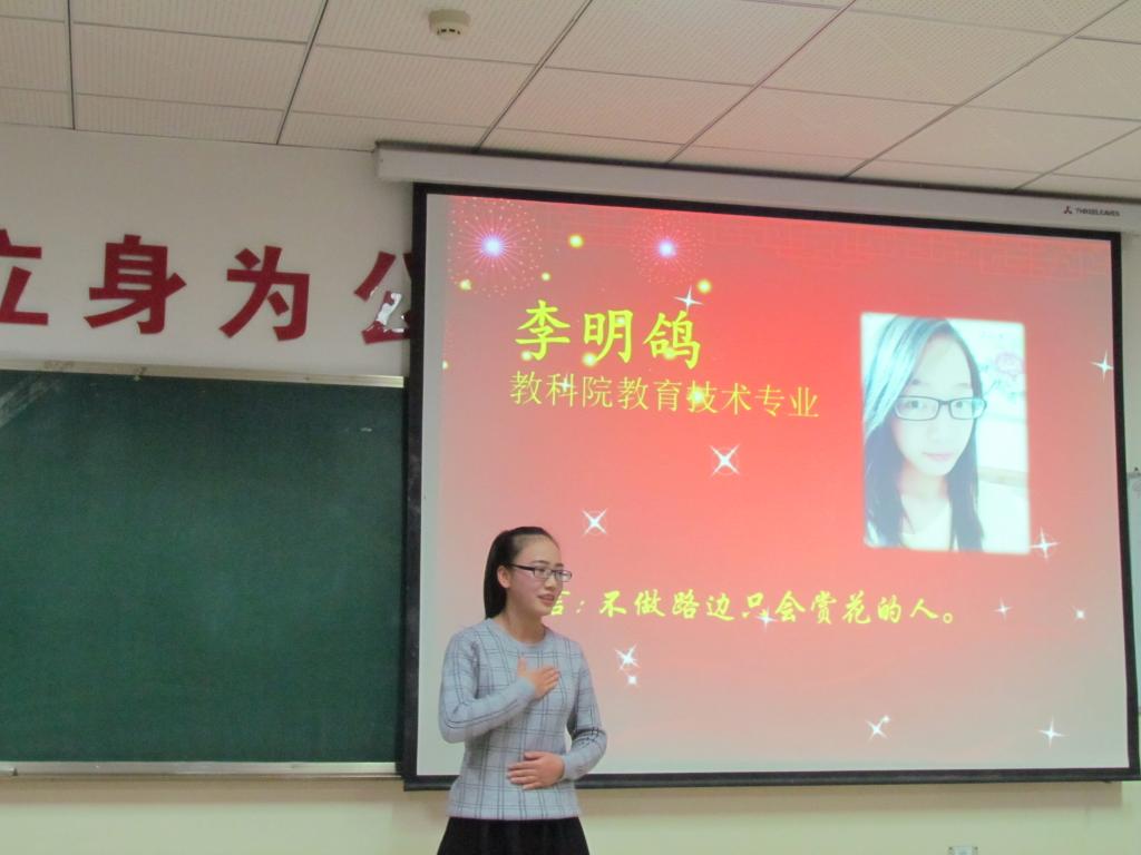 比赛伊始,由主持人唐则玉介绍演讲主题,指出祖国人民与“我”紧密的关系。随后,选手们按照抽签顺序进行演讲,选手们尽情畅谈了自己对“祖国、人民、社会与我”这一主题的理解,精彩的演讲不断博得同学们的掌声和喝彩声,现场气氛十分活跃,在展示了深厚的演讲功底,同时也彰显了当代大学生积极向上的良好精神风貌。比赛即将结束时评委贾学斌针对选手们的不同表现详细地分析其优势与不足,强调不要追求文字的过分华丽,切入点要小,配乐与内容要切合。