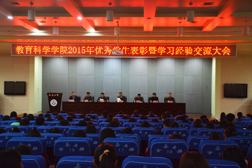 于图书馆报告厅举办2015年优秀学生表彰暨学习经验交流大会。教务处薛苏秦副处长、学生处马小惠副处长以及学院领导班子等出席了本次大会。大会由副书记杨文军主持。