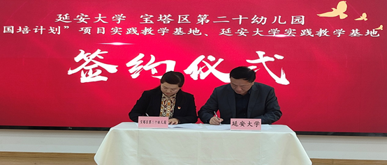 与宝塔区第二十幼儿园举行“携手共进,共创未来”国培计划项目和学前教育专业实践教学双基地签约暨授牌仪式在宝塔区二十幼举行。延大91制片厂