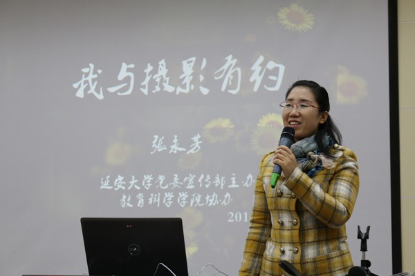 教师张永芳,讲座的题目是《我与摄影有约》。