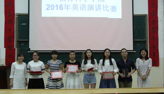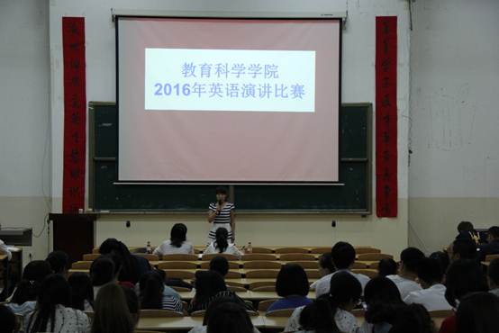 在第五阶梯教室举办2016年英语演讲比赛,学生以班级为单位报名参加,学院以公平、公正和规范为标准进行选拔。此次比赛由学院教学秘书崔荣宝老师主持,特别邀请到我校外国语学院李小芳副教授和孙娟娟老师担任此次比赛的评委。