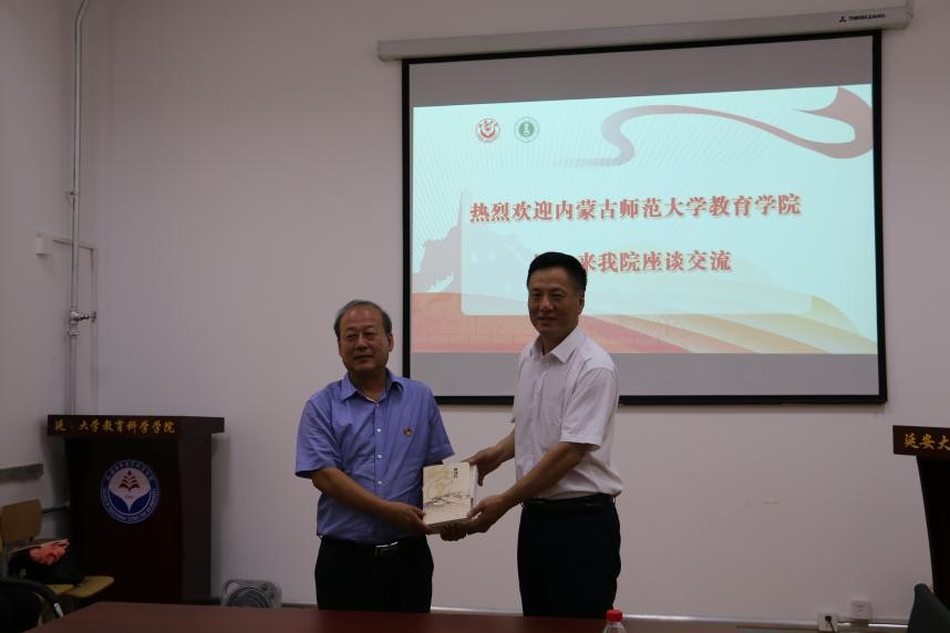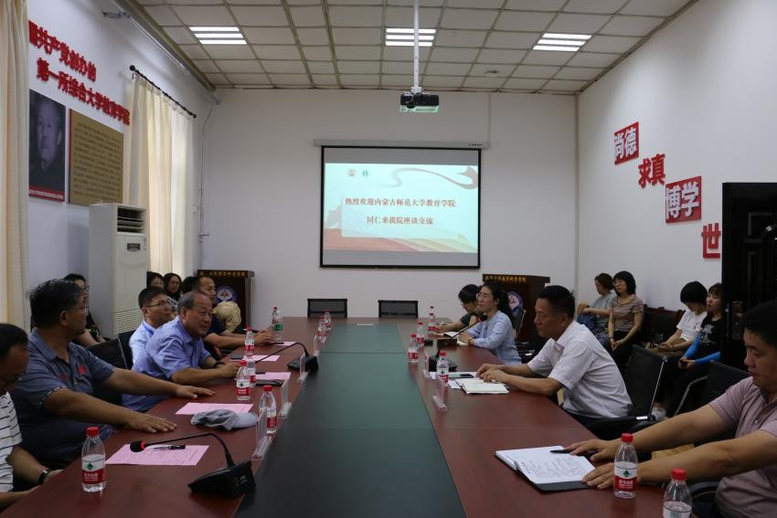 曹殿波副院长首先代表学院党政对内蒙古师范大学教育学院各位领导和教师的到访表示了热烈欢迎。接下来双方对参加座谈会的人员进行了介绍。刘瑞儒院长、米俊魁院长分别对两院的历史沿革、师资力量、学科建设与专业发展等情况进行了简要介绍。