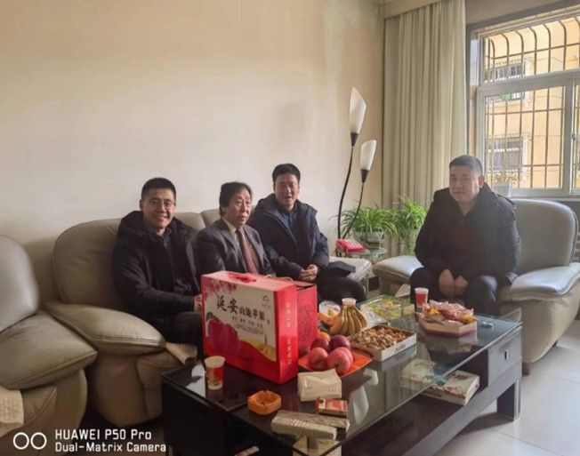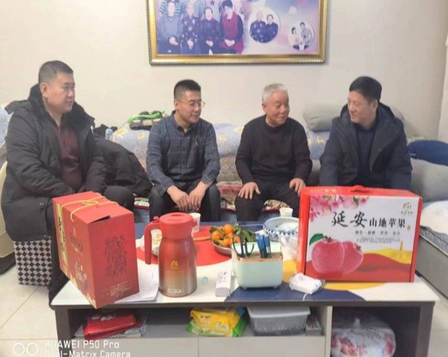 退休老同志武海明、毛海东、李诚、吴延晋等。每到一位老同志家里,首先代表学院送来新年祝福,祝退休老同志身体健康,新年快乐;对老同志为91制片厂