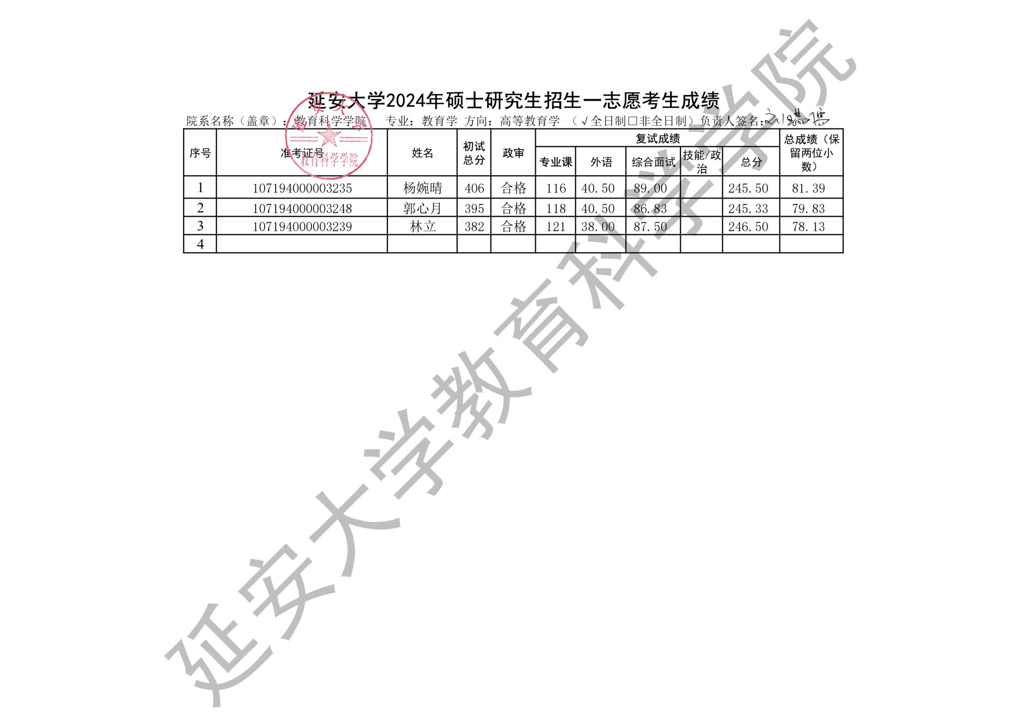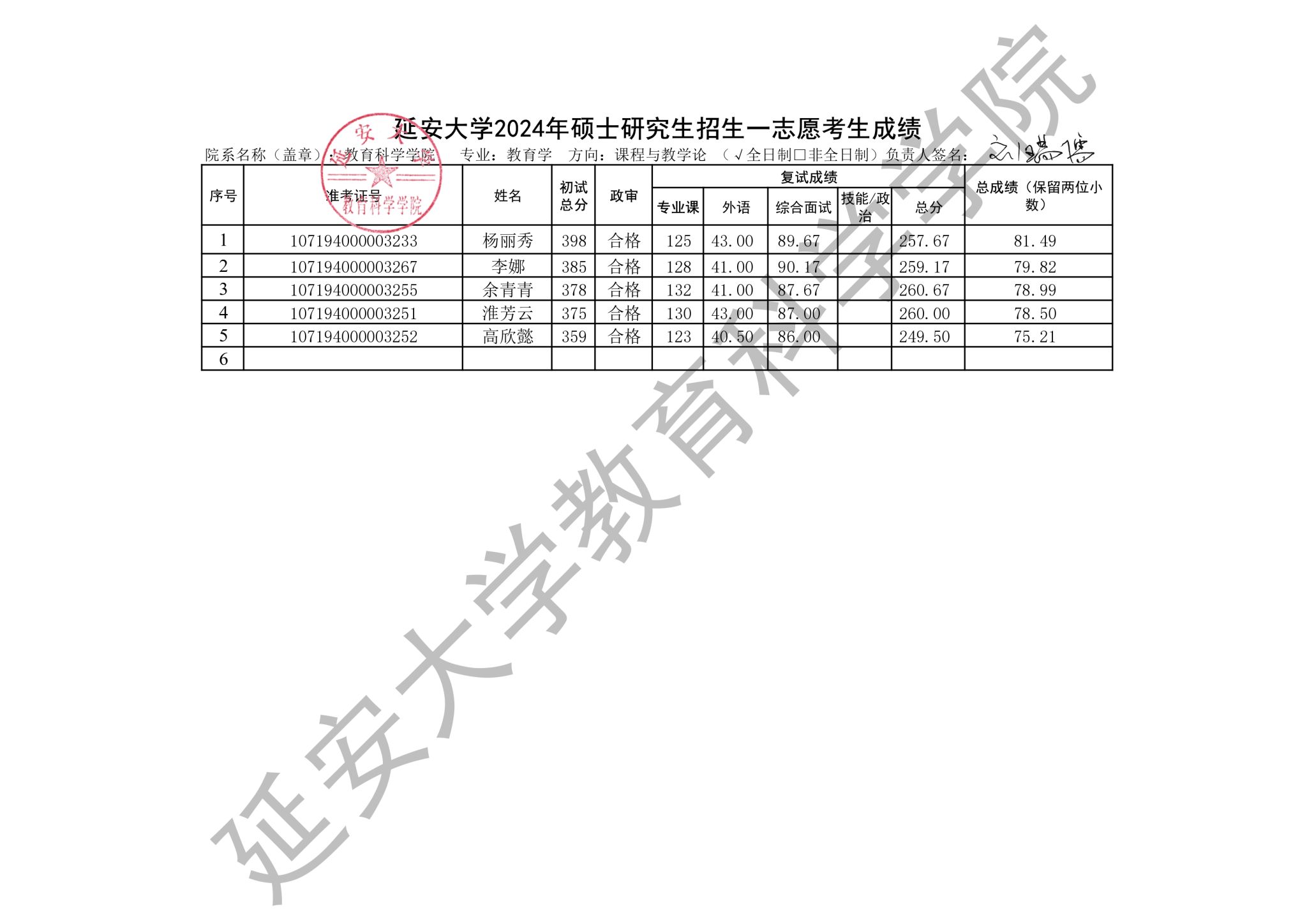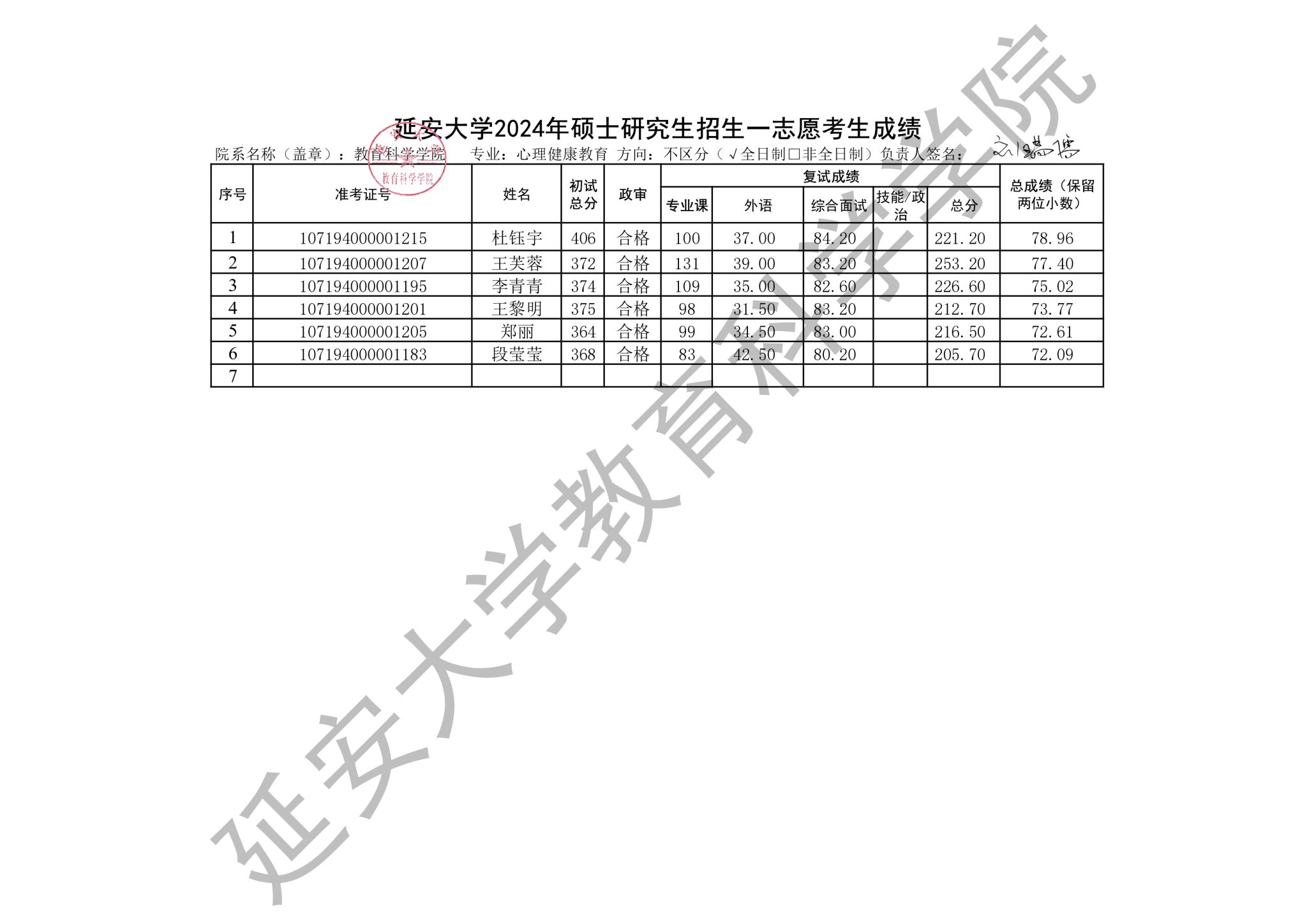 依据91制片厂 2024年硕士研究生复试工作实施方案,于2024年3月29日至3月31日的一志愿考生复试工作已圆满结束,现将具体复试成绩予以公示,公示时间为十个工作日,于公示期间如有疑议,请联系: