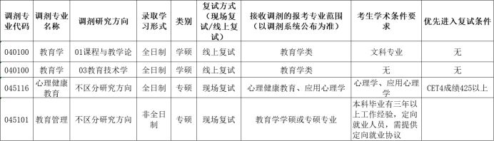 2024年心理健康教育专业和教育管理专业硕士研究生调剂复试采取现场复试形式;
