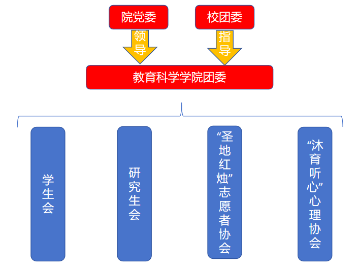 团委是在校团委及院党委的领导下,负责学生工作的思想政治工作及相关学生活动的组织。一直以来以习近平新时代中国特色社会主义思想为指导,坚决落实立德树人根本任务,以科学发展观为统筹,立足良好院风、学风建设,致力于广大青年素质的全面提高,为团员青年的成长成才和学院的改革发展做出服务和贡献。担负着团结教育广大青年学生,培养青年共产主义者和优秀学生骨干队伍,执行上级团组织和共青团中央的方针政策,拓展青年学生的综合素质和繁荣校园文化生活,并在此基础上着力做好制度建设、思想建设、精品活动建设、基层团组织建设等工作的重任。是学生和学校之间、学生和老师之间、学生和团组织之间联系的重要纽带和桥梁。指导学院学生会、研究生会、“圣地红烛”志愿者协会、“沐育听心”心理协会等学生组织的工作。