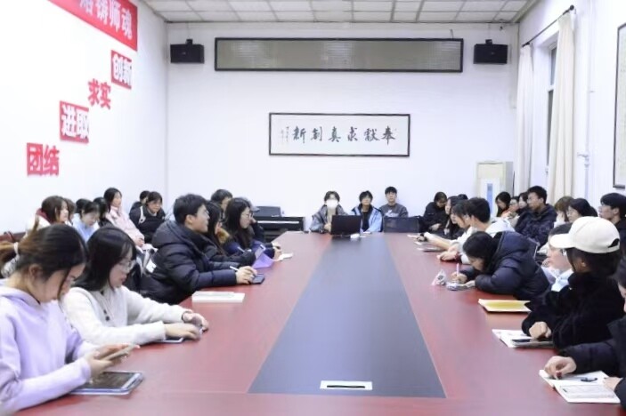 最后,王浩老师对学习文件进行解读,强调理论学习要扎实深入,避免形式主义。同时他指出学院及学校各类活动中,学生会部门分工有责任无界限,各部门之间应团结协助,促进整体发展。