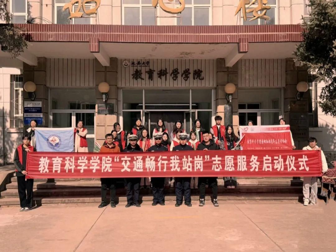 辅导员王浩、张磊,交通警察杨帆、秦勇、徐路路及20名志愿者代表出席仪式。